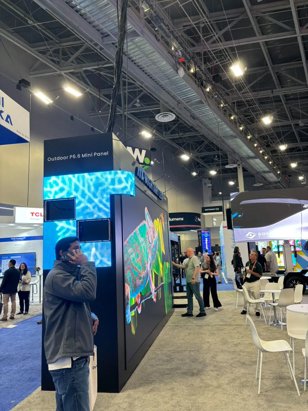 On the opening day, the Mightary LED booth (W833) was bustling with visitors. Its unique product designs and outstanding display effects captivated the attention of many attendees. New products like the outdoor mini cabinet, RAS Flexible Rental Series, Mechanical Wave Screen, and Movable Foldable Vehicle-mounted Screen showcased advanced craftsmanship, leaving a lasting impression.